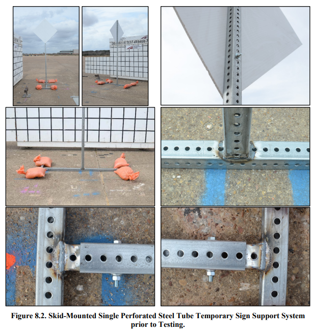 Skid-Mounted Single-Post Perforated Steel Tube Temporary Sign Support