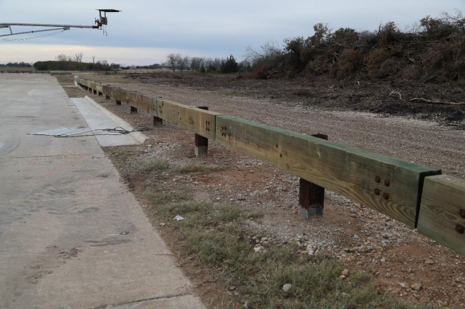 Description: Anchor Section was slightly extended to 29 feet 1½ inches, and the Length of Need began at the joint between Posts 3 and 4, utilizing a bent splice plate at that location. While the LON retained its 100- foot span, the post layout was revised to include only nine 10-foot spaces. Additionally, the depth of backfill behind the posts located in front of the curb section increased from 16 inches to 17 inches. All other elements of the installation, including materials, curb and parapet construction, and connection details, remained the same as in test 620061-01-2.