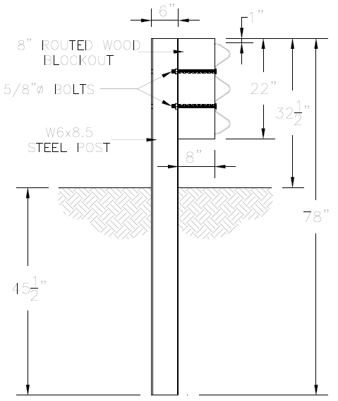 Description: [FAILED] 32.5" high G9 thrie beam guardrail system with W6x8.5 steel posts