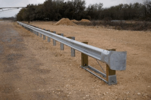 Description: The 181 ft-3-inch-long test installation was comprised of a 31-inch high, 12-gauge, 4-space, W-beam guardrail system. The W-beam rail was supported by 72-inch wide-flange posts with 14-inch-tall wood block outs. TxDOT DATs terminated each end of the guardrail system. Beginning with the upstream DAT, there were four distinct sections of the installation: