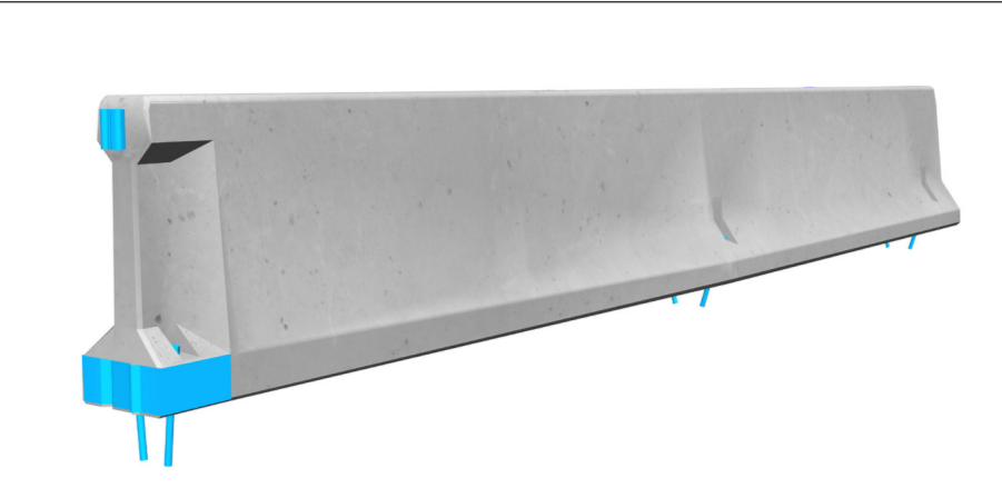 Description: This transition connects the free standing system REBLOC 80F_8 (new jersey profile) with the anchored system REBLOC 80SAH_12_8B (section similar to an I-beam profile). Due to the symmetrical profile it can be used for single-sided and double-sided application.